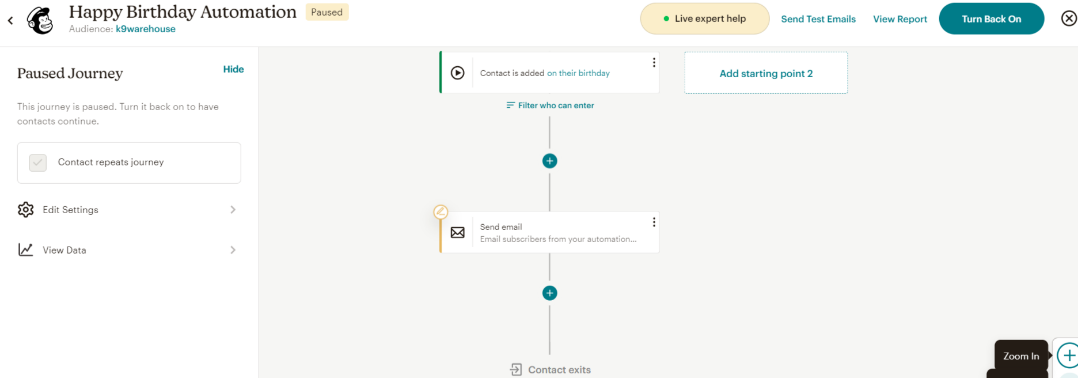 The workflow editor is user-friendly, making it easy to customize existing journeys or add new steps by simply clicking the add button. Mailchimp offers a variety of rules and actions that enable you to create both simple and complex sequences for your audience. If you decide to start from scratch, you’ll first select the purpose of the new journey and then build it from the ground up. While it may take some time to familiarize yourself with the builder, you should not encounter any major issues, and the process of creating a customer journey map is quite smooth.