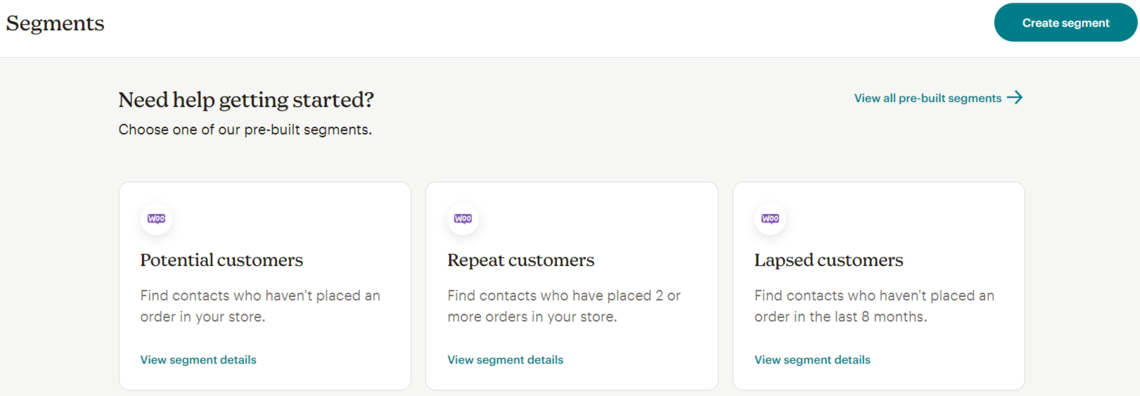Pre-built Segments: Mailchimp offers pre-built segments based on common criteria like recent activity, engagement level, or demographics, which simplifies the segmentation process—especially for those who might not have much experience in audience targeting